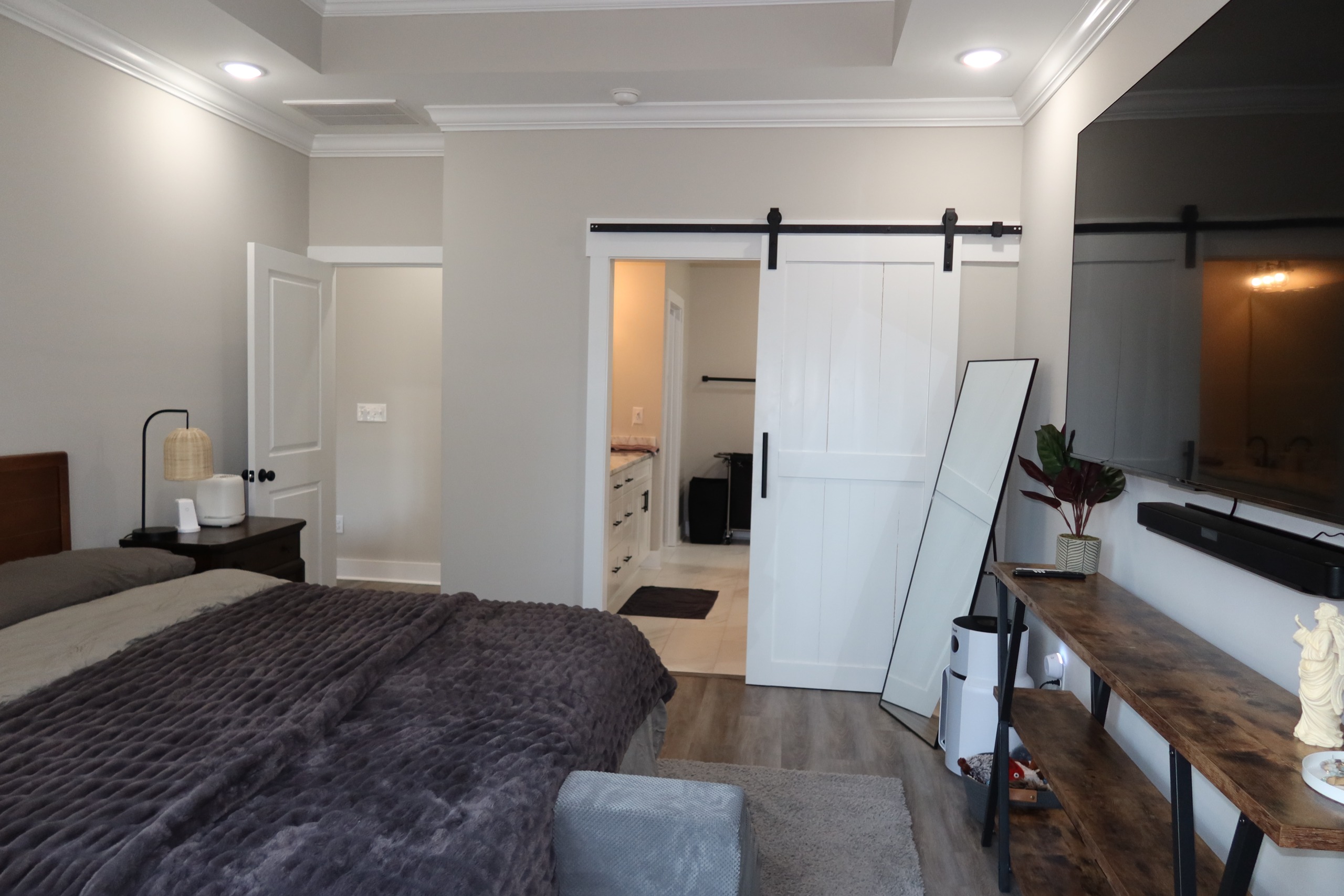 Beautifully maintained 3 bedroom, 2 bath home in Santee, SC, offering modern finishes and peaceful Lowcountry living. This home features an open-concept layout with abundant natural light. The stylish kitchen boasts white cabinetry, stainless steel appliances, modern natural stone countertops, and a spacious island. The primary suite includes a spa-like bath with double vanity, and a walk-in tiled shower, and large walk in closet. Enjoy outdoor living on the screened-in back porch overlooking a private, wooded backyard, plus an additional patio ideal for entertaining. This move in ready home also includes a dedicated laundry room, home office, and attached garage. Come and see your new home that is conveniently located near Lake Marion, 3 golf courses, dining, and many local amenities.